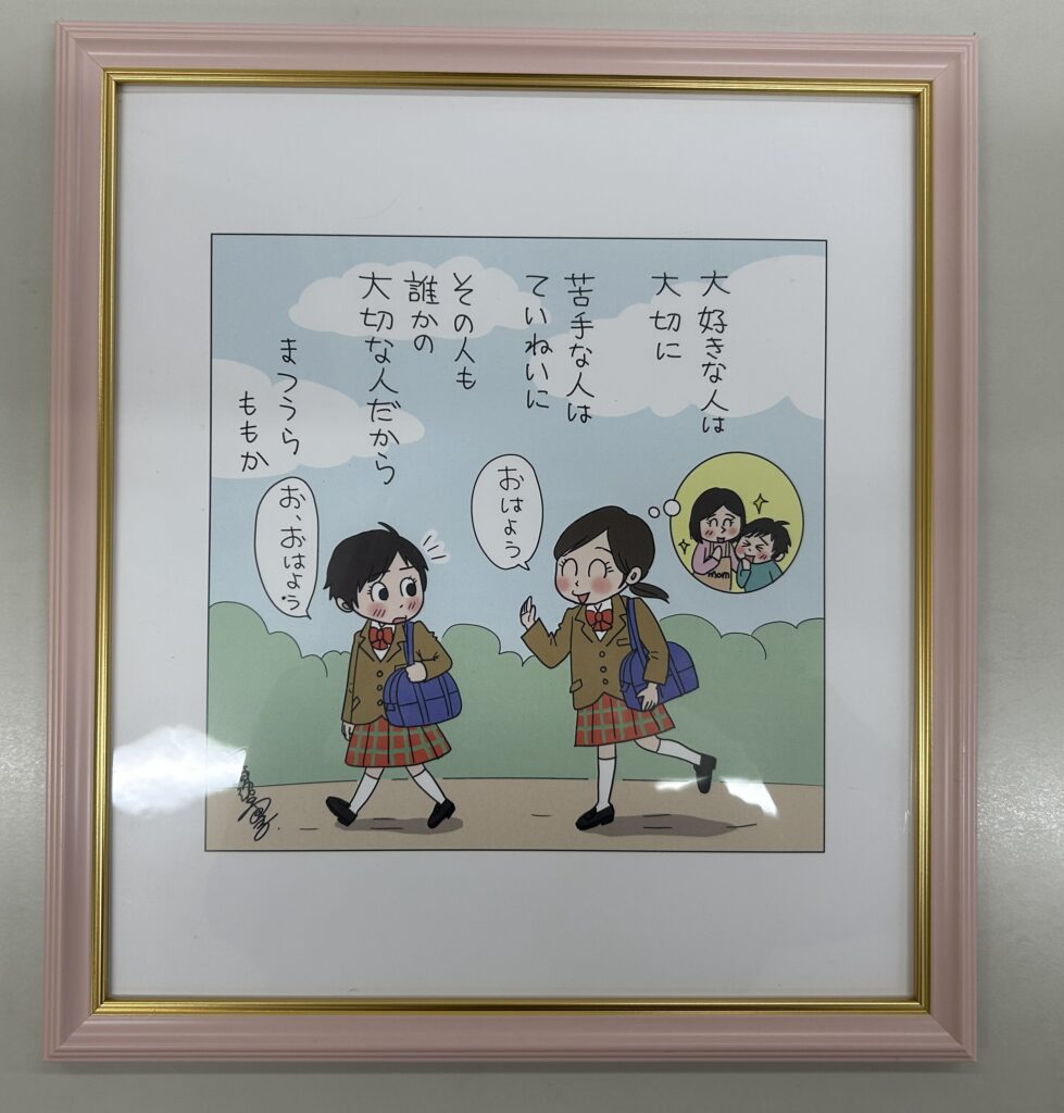 登龍中学校へお邪魔し、松浦さんに賞状、作品のイラスト等をお渡ししました。
