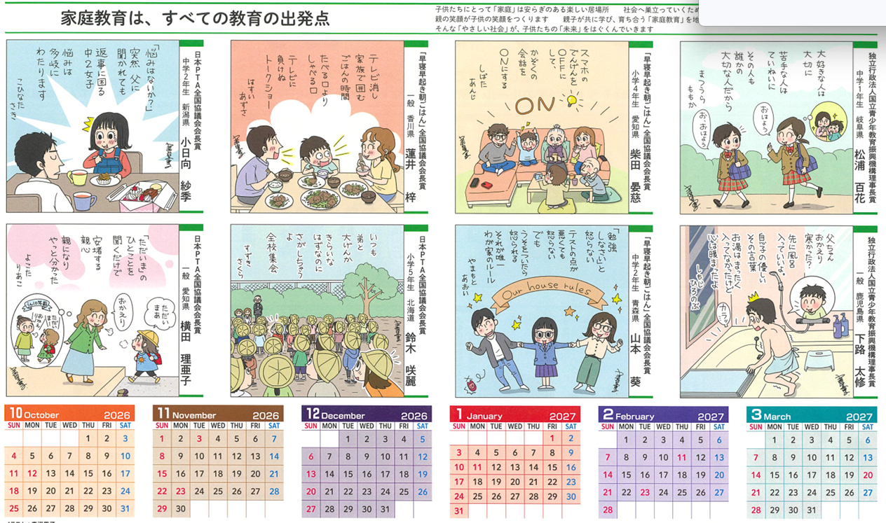 上記カレンダーの画像は、日本PTA全国協議会が作成されたカレンダーより引用しています。