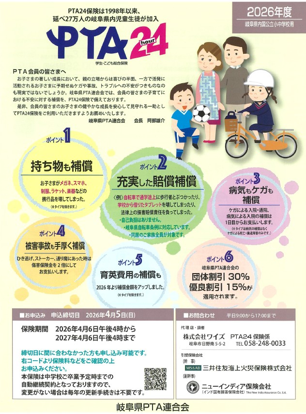 岐阜県内 国公立小中学校 PTA会員の皆さまへ